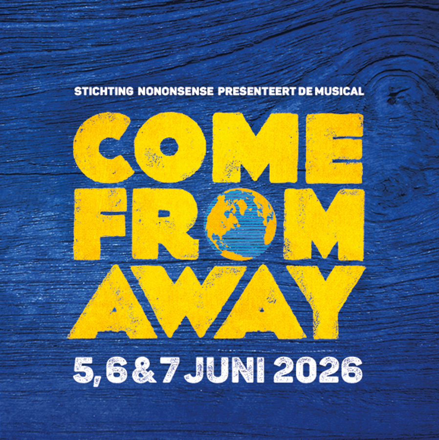 Stichting NoNonsense brengt met al haar leden de musical ‘Come from Away’. Deze musical vertelt het waargebeurde verhaal over een klein dorpje dat zich op de kaart zette door duizenden gestrande reizigers op te vangen. Toen op 11 september 2001 het Amerikaanse luchtruim werd gesloten, verdubbelde de populatie van Gander bijna. ‘Come From Away’ laat zien hoe een crisissituatie het beste in mensen naar boven kan halen. In deze hartverwarmende musical maken angst en wantrouwen plaats voor hoop, ontroering, humor en liefde.